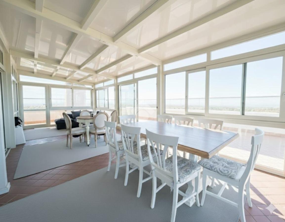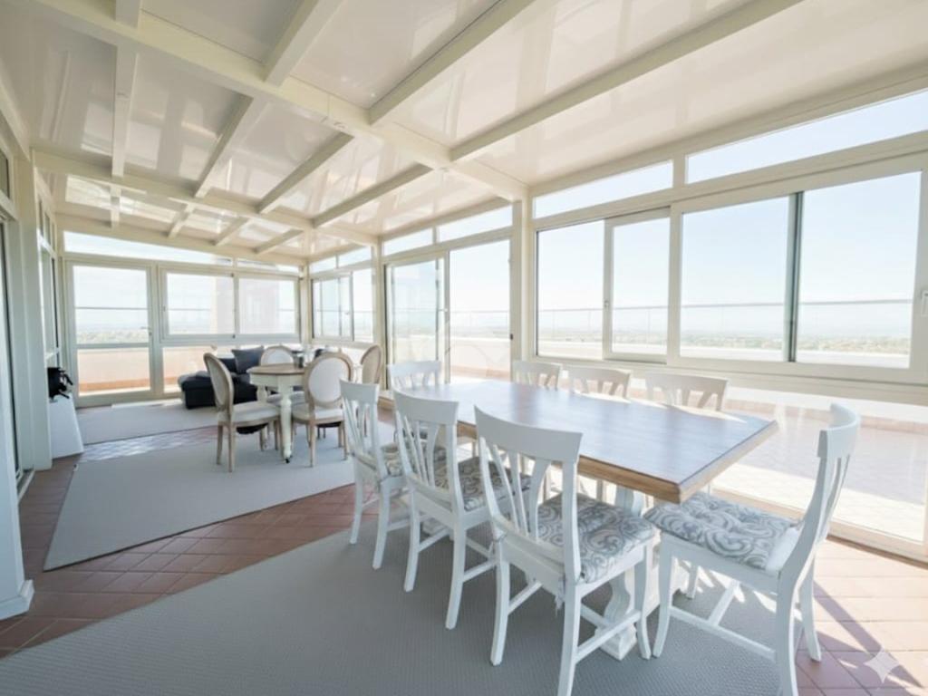 Gli spazi esterni includono tre terrazzi di cui due al piano inferiore e un'ampia terrazza al piano superiore, di circa 100 mq, dotata di una veranda panoramica ideale per vivere momenti di relax.