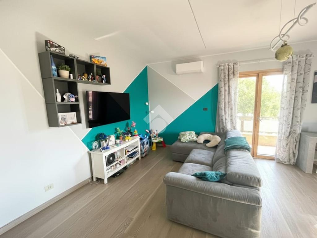 Allo stato attuale l'immobile è composto da salone con cucina a vista, camera da letto matrimoniale, ripostiglio e bagno. Completano la proprietà due balconi perimetrali.
