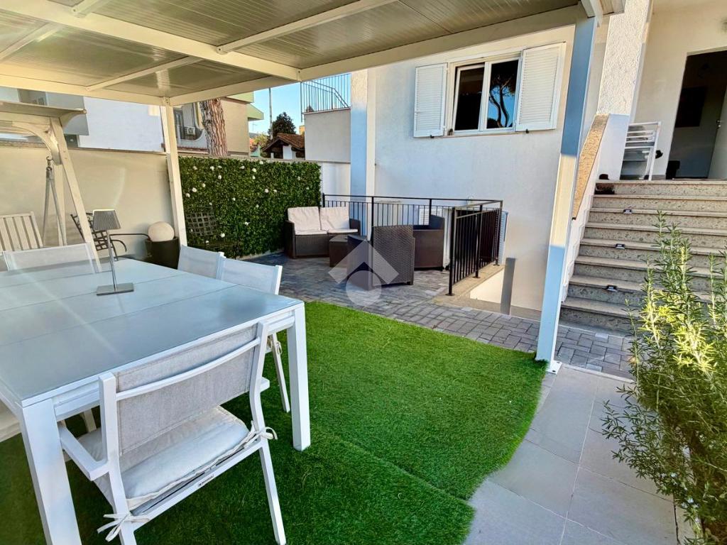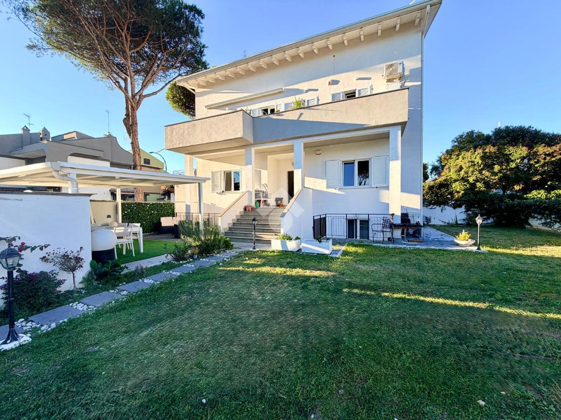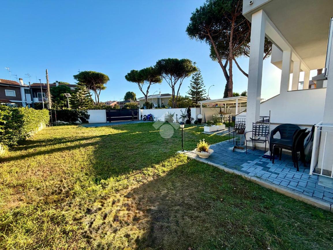 Proponiamo la vendita di un esclusivo appartamento in villa sito in via Euripide, nel cuore del prestigioso quartiere Axa. L’immobile, oggetto di recente ristrutturazione e riqualificazione energetica, è disposto su due livelli e presenta, al piano terra rialzato, soggiorno con cucina a vista, camera matrimoniale con cabina armadio e bagno, al piano seminterrato sbancato, tre camere da letto con accesso diretto al giardino e bagno finestrato.